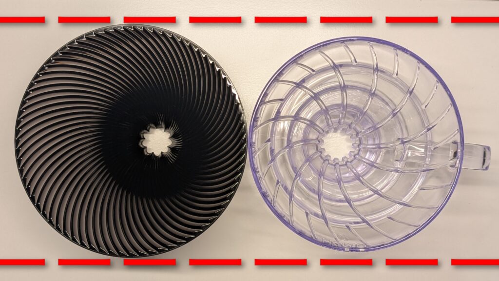 ORIGAMIもV60以上に大きな穴と深い多数のリブを持っています。